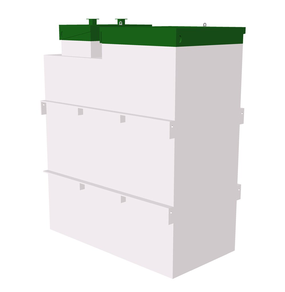 Автономная канализация для дачи Топас 15 ПРТехнические характеристики: Количество постоянно проживающих — 15 человек Переработка стоков за сутки — 3 м3 Залповый сброс, максимальный — 850 л. Потребляемая энергия, сутки — 2,9 кВт. Масса — 380 кг Размеры, м — 2,5 x 1,2 x 2,1